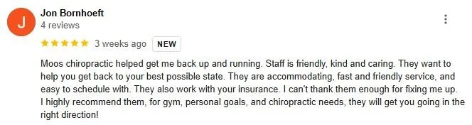 100% Secure. By Submitting, you agree to Moos Family Chiropractic's Terms of Use and Privacy Policy. You consent to receive text messages from us at the cell number provided to book your appointment and receive reminders. Message frequency depends on your activity. Reply STOP to opt-out.